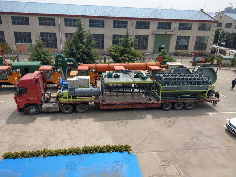 發(fā)往安徽安慶的整套有機(jī)肥設(shè)備已經(jīng)裝車(chē)完畢,運(yùn)往客戶(hù)指定地點(diǎn)。